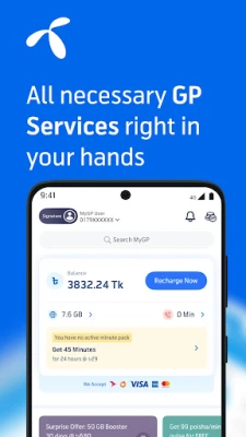 MyGP-এর সাহায্যে আপনার কল, SMS, ইন্টারনেট এবং রিচার্জের বিস্তারিত ইতিহাস এক নজরে দেখুন। মিসড কল এলার্ট, ওয়েলকাম টিউন এবং FNF-এর মতো অত্যাবশ্যক সার্ভিসগুলোও এখন আপনার হাতের মুঠোয়। কিন্তু MyGP শুধু টেলিযোগাযোগেই সীমাবদ্ধ নয়; এটি বিনোদনের এক বিশাল ভান্ডারও বটে।
