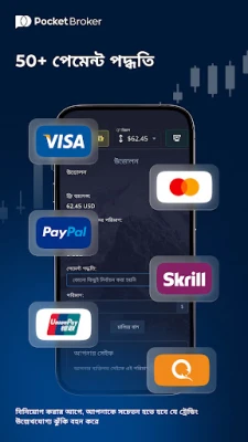 পকেট ব্রোকার ব্যবহারকারীদের জন্য এক অসাধারণ সুবিধাজনক প্ল্যাটফর্ম। এখানে আপনি পাবেন ৫০টিরও বেশি নির্ভরযোগ্য পেমেন্ট পদ্ধতির মাধ্যমে দ্রুত এবং ঝামেলামুক্ত জমা ও উত্তোলন প্রক্রিয়া, যেখানে কোনো প্ল্যাটফর্ম ফি নেই। আপনার স্থানীয় ভাষায় বিশ্বজুড়ে অনলাইন ট্রেডিংয়ের অভিজ্ঞতা উপভোগ করুন, কারণ আমাদের সম্পূর্ণ প্ল্যাটফর্ম ২৪টি ভিন্ন ভাষায় উপলব্ধ। যেকোনো প্রশ্ন বা সমস্যার সমাধানের জন্য পকেট অপশন সাপোর্ট সার্ভিস ২৪/৭ আপনার পাশে আছে, যা আপনাকে নিশ্চিন্তে ট্রেড করতে সাহায্য করবে। আন্তর্জাতিক নিরাপত্তা লাইসেন্সিং দ্বারা প্রত্যয়িত হয়ে পকেট ব্রোকার আপনার গোপনীয়তা এবং তহবিল সুরক্ষিত রাখতে প্রতিজ্ঞাবদ্ধ। পকেট ব্রোকার অ্যাপের সাথে আপনার আর্থিক যাত্রার একটি নতুন অধ্যায় শুরু করুন।