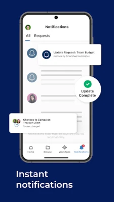 কয়েক মিনিটের মধ্যে সহজ কিন্তু শক্তিশালী স্বয়ংক্রিয় ওয়ার্কফ্লো স্থাপন করুন যা কাজের অগ্রগতি ট্র্যাক করে এবং দক্ষতা বাড়ায়। নিয়মিত কাজগুলিতে স্বয়ংক্রিয়তা যোগ করুন যেমন সতর্কতা পাঠানো, অনুমোদনের অনুরোধ করা এবং উৎপাদনশীলতা বাড়ানো। Smartsheet-এর মাধ্যমে আপনি Google Drive, OneDrive, Dropbox ইত্যাদি থেকে ফাইল সংযুক্ত করতে পারবেন এবং কেন্দ্রীয় একটি প্ল্যাটফর্মে সব কথোপকথন ও সিদ্ধান্ত এক জায়গায় দেখতে পারবেন। ফর্মের মাধ্যমে মাঠপর্যায় থেকে ডেটা সংগ্রহ করুন, ছবি আপলোড করুন অথবা বারকোড স্ক্যান করে রিয়েল টাইমে ইনপুট ট্র্যাক করুন, এমনকি অফলাইনেও। গতিশীল ড্যাশবোর্ডগুলির সাহায্যে KPI, প্রবণতা এবং সারসংক্ষেপ প্রতিবেদনগুলির রিয়েল-টাইম দৃশ্যমানতা সরবরাহ করুন এবং স্মুদার ওয়ার্কফ্লোর জন্য অনুরোধের ভিত্তিতে পদক্ষেপ নিন। Smartsheet আপনার বিদ্যমান টুলগুলির সাথে নির্বিঘ্নে সংহত হয় এবং WorkApps এর নো-কোড প্ল্যাটফর্মের সাহায্যে স্বজ্ঞাত ওয়েব ও মোবাইল অ্যাপ তৈরি করে আপনার ব্যবসাকে আরও সুগম করে তোলে।